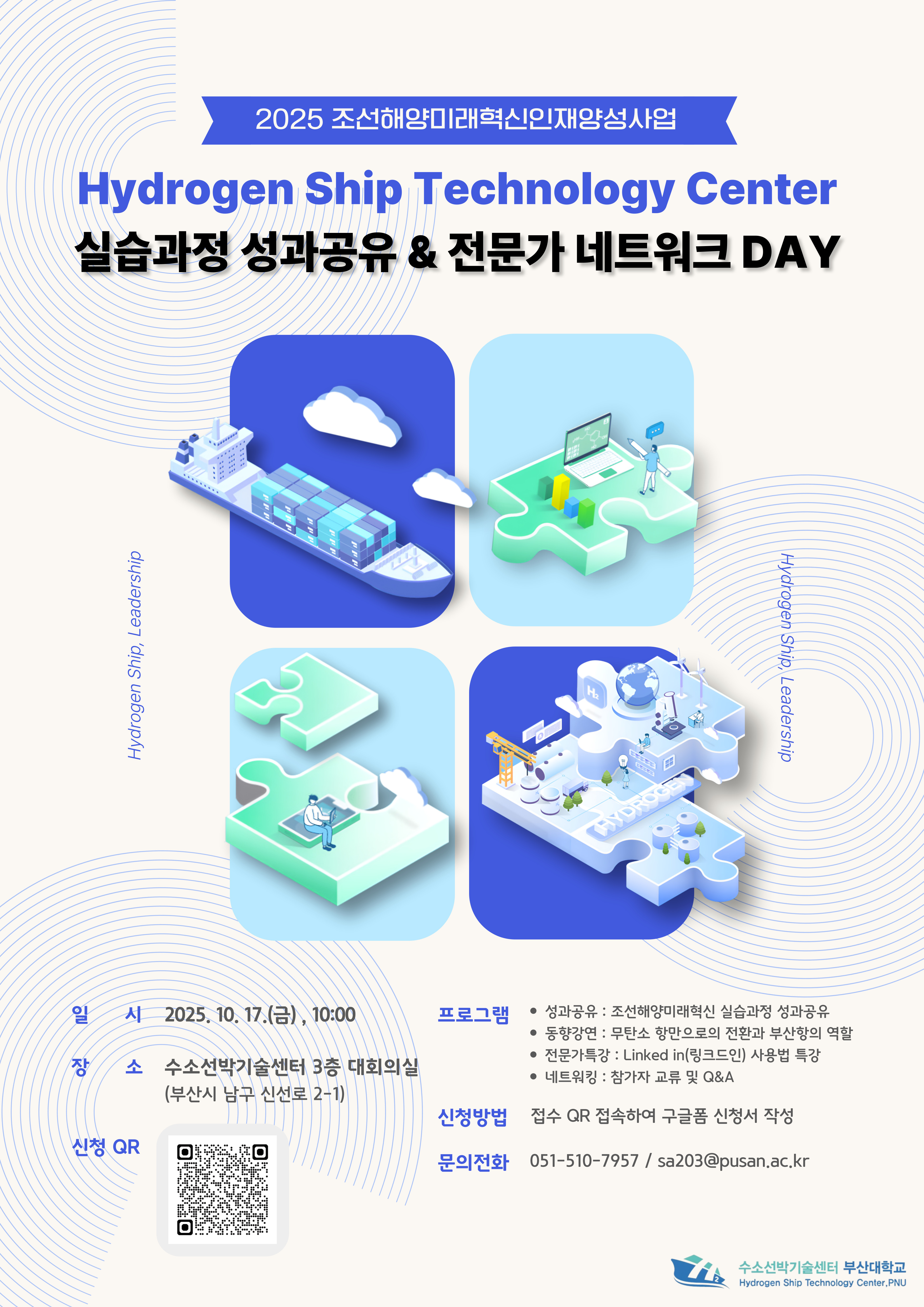 fnctId=bbs,fnctNo=13158 2025 조선해양미래혁신인재양성사업 Hydrogen Ship Technology Center 실습과정 성과공유 & 전문가 네트워크 DAY date 2025.09.30 name 관리자 e-mail view 32 첨부파일 첨부파일이(가) 없습니다.